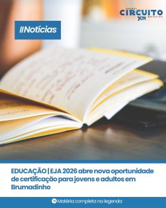 Moradores de Brumadinho que não concluíram a educação básica na idade regular terão uma nova chance de obter a certificação por meio da Educação de Jovens e Adultos (EJA). A primeira banca de 2026 será realizada nos dias 24 e 25 de março, no turno da noite, na Escola Municipal Beatriz Pampulini.